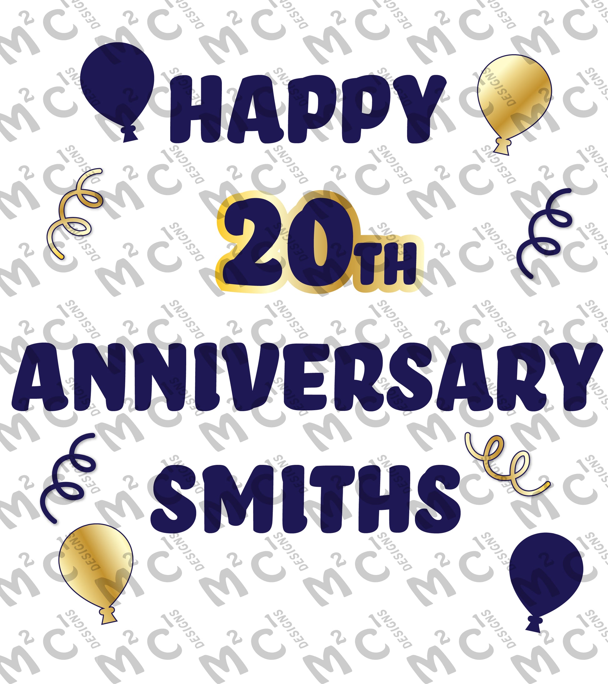- Â Full set includes Happy Anniversary with Name, Balloons and streamers, and anniversary year. .