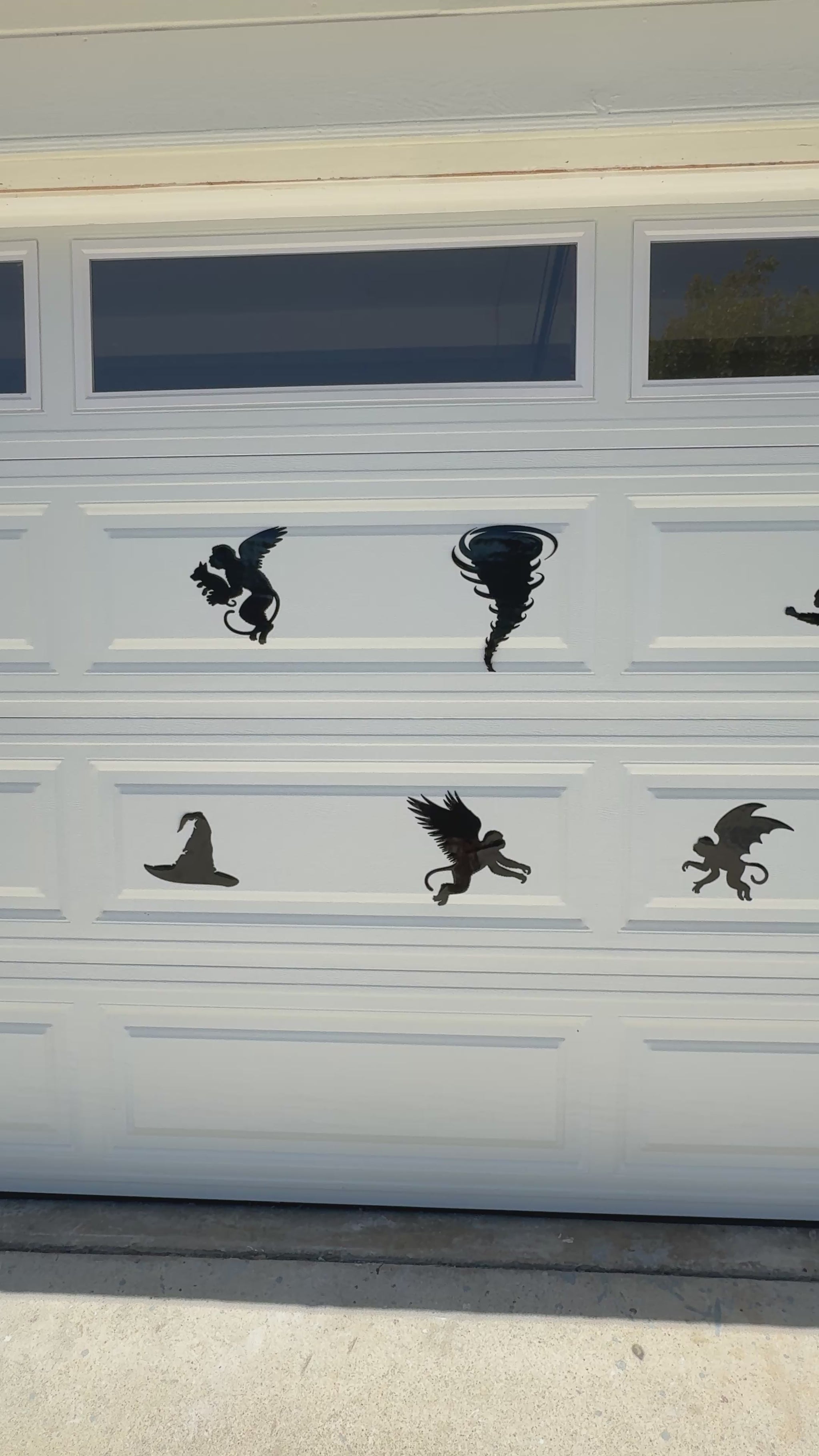 Add a spooky, dramatic touch to your home this Halloween with these all black silhouette-style magnetic decorations! Inspired by Oz, these eerie figures make your garage door look like a scene from a classic Halloween tale.