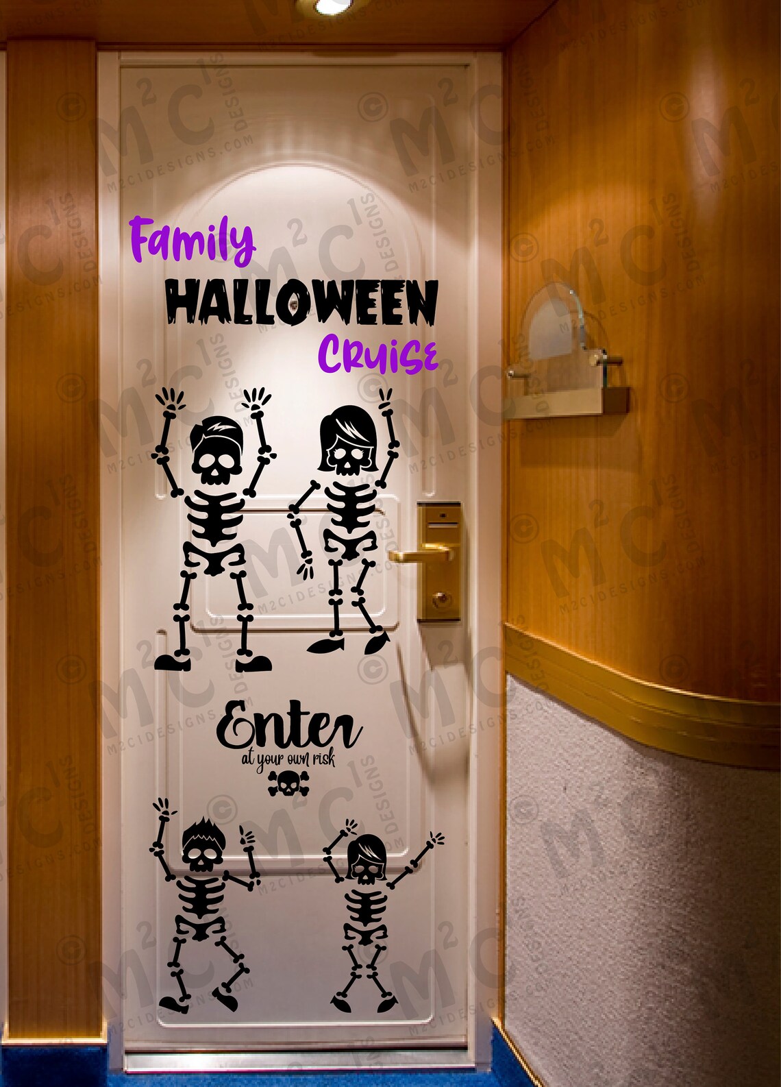 Celebrate the most fun holiday of the year with Family of Skeleton Happy Halloween Cruise Ship Door Magnets. This is a great way to make a Halloween party, trick or treating more interesting and add mysticism to it.
