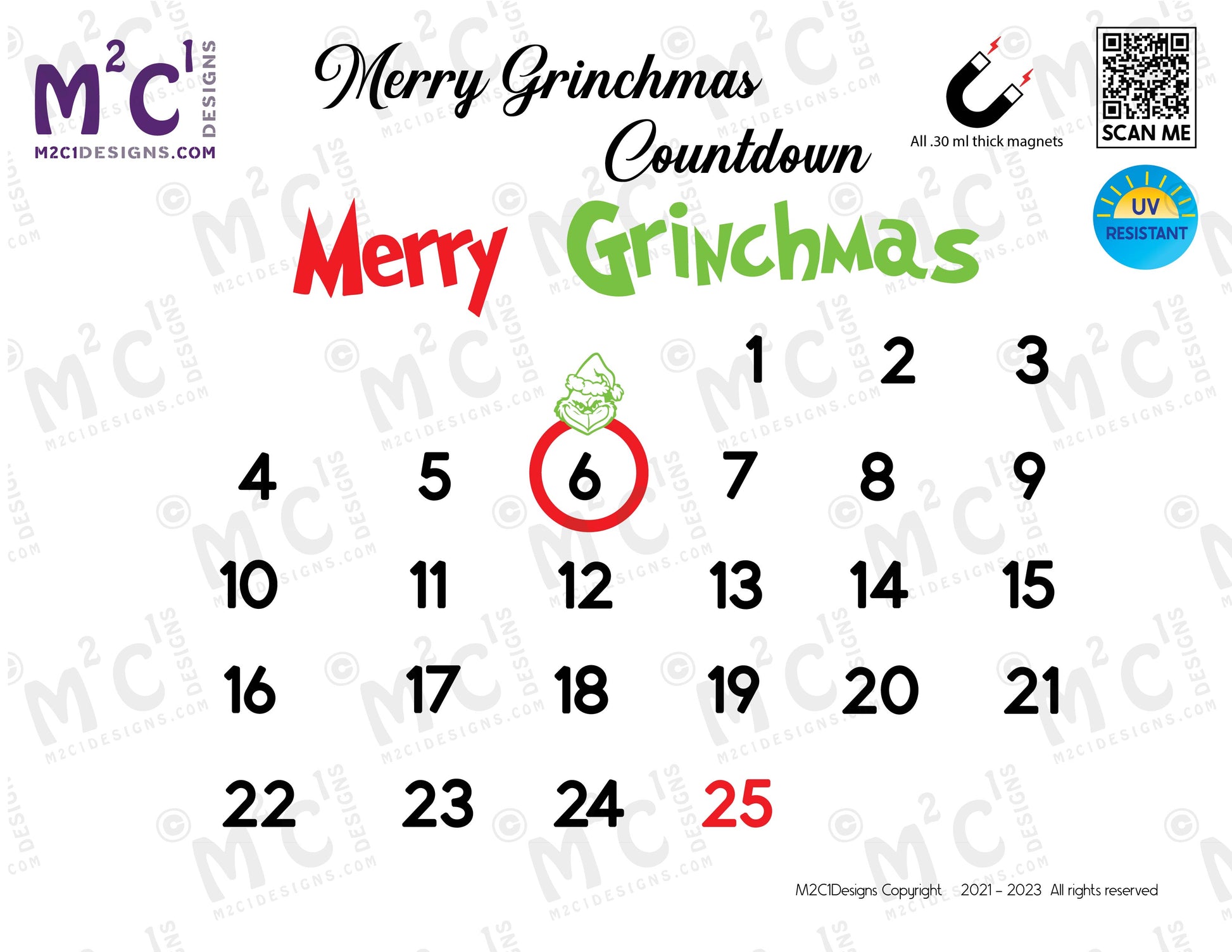Merry Grinchmas Advent Calendar Magnetic Numbers, Reusable, Merry Grinch sign, Christmas Decorations